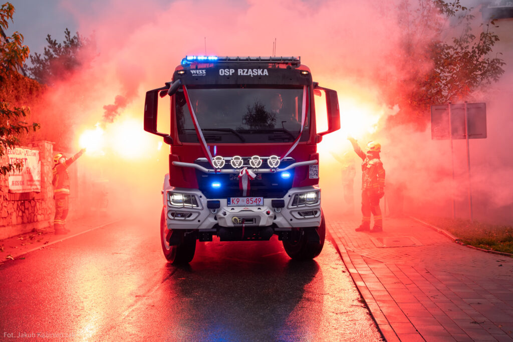 W sobotnie popołudnie, 11 października 2025 roku, na placu przed remizą Ochotniczej Straży Pożarnej w Rząsce (gm. Zabierzów, pow. krakowski) odbyło się niezwykle uroczyste wydarzenie. Strażacy powitali bowiem fabrycznie nowy średni samochód ratowniczo-gaśniczy na podwoziu MAN TGM 18.320 z zabudową wykonaną przez firmę WISS – Samochody Specjalne.