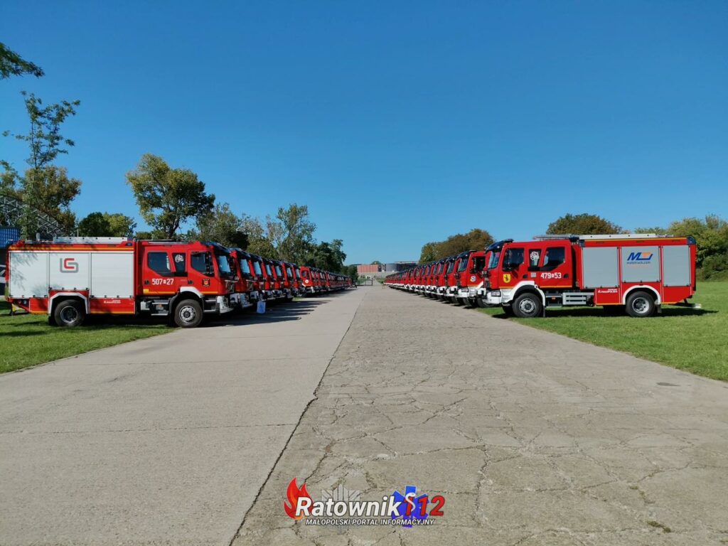 Oficjalne przekazanie 63 samochodów ratowniczo-gaśniczych w ramach projektu Bezpieczna Małopolska – Bon na ratowanie